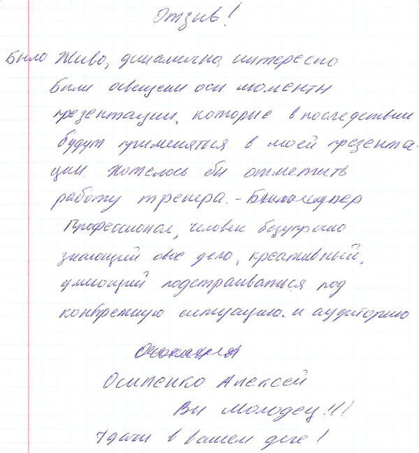 от бизнес—тренера, тренирующего отделы продаж и руководителей компаний,